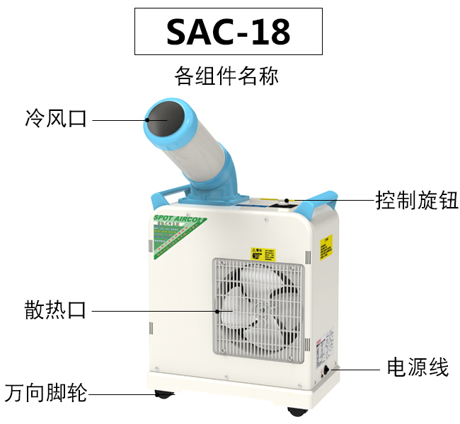 移动工业冷气机SAC-18 制冷量1.8KW/6000BTU 风量220M³/H