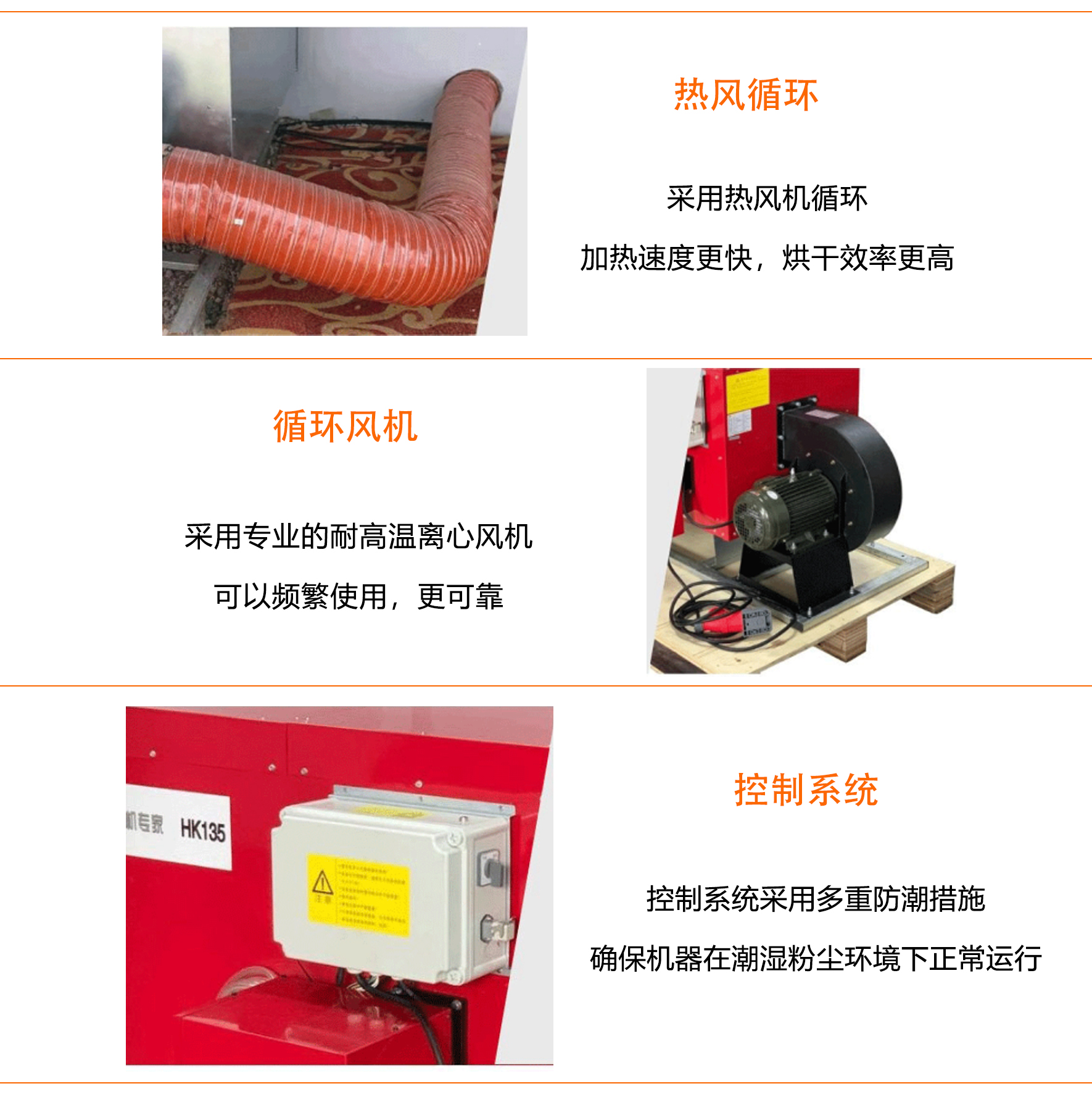 4.由于采用热风循环,加热的速度更快,烘干效率更高,节约费用