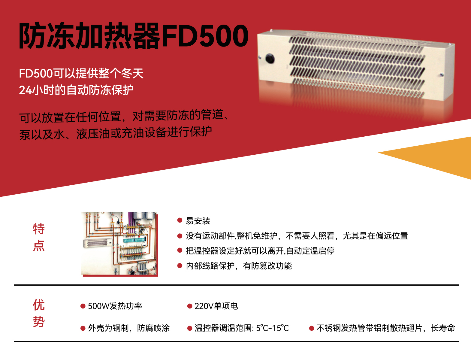 永备防冻电加热器 FD500 (500w)