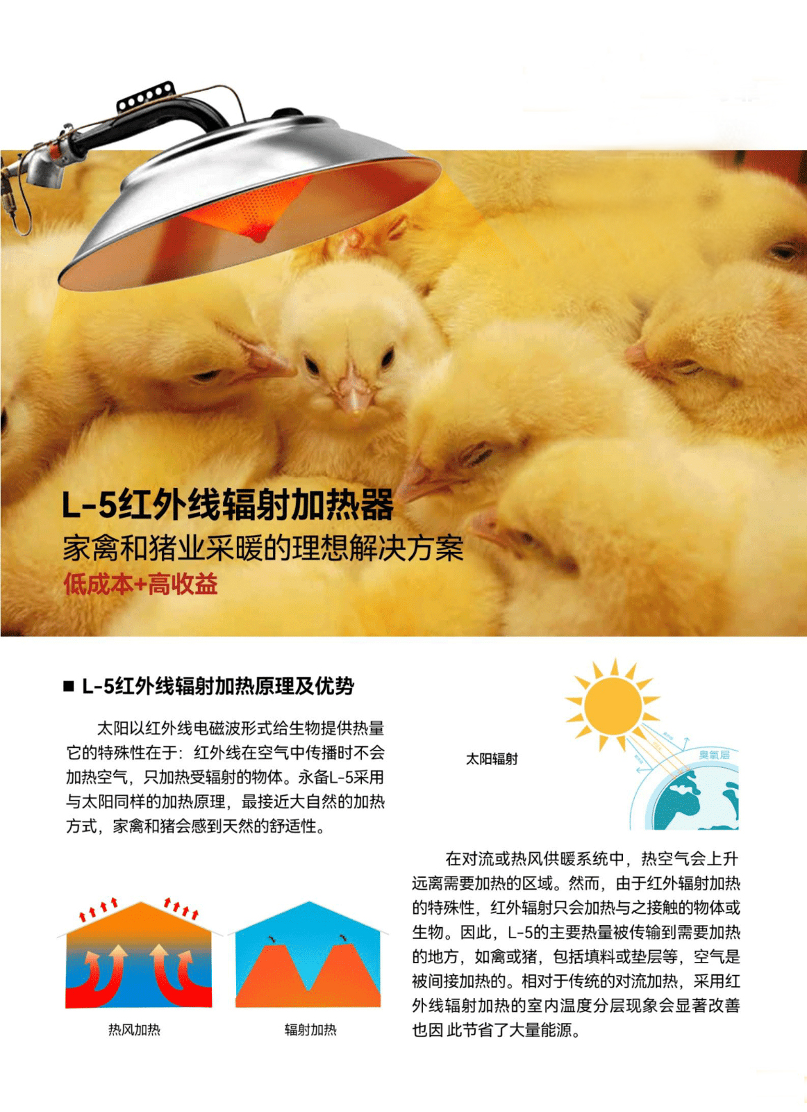 永备L-5采用与太阳同样的加热原理,接近大自然的加热方式,家禽和猪会感到天然 的舒适性。